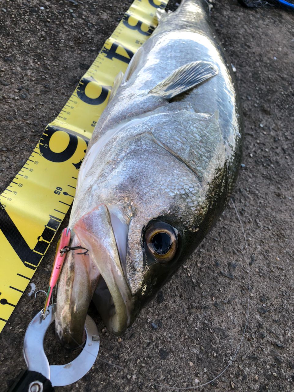 場所変えて二投目。初めて全身を水面から出してのエラ洗いを見れました。迫力がすごい。😂キャッチできて良かった。シーバスありがとう。