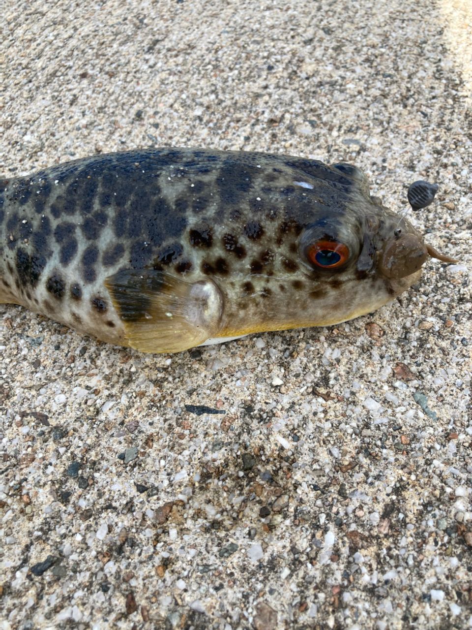 キジハタ手のひら大がよくかかりす。フグがねぇ〜ワームをガジガジ、カニの手丸坊主にしていきます、、ワームがいくらあっても足りない。