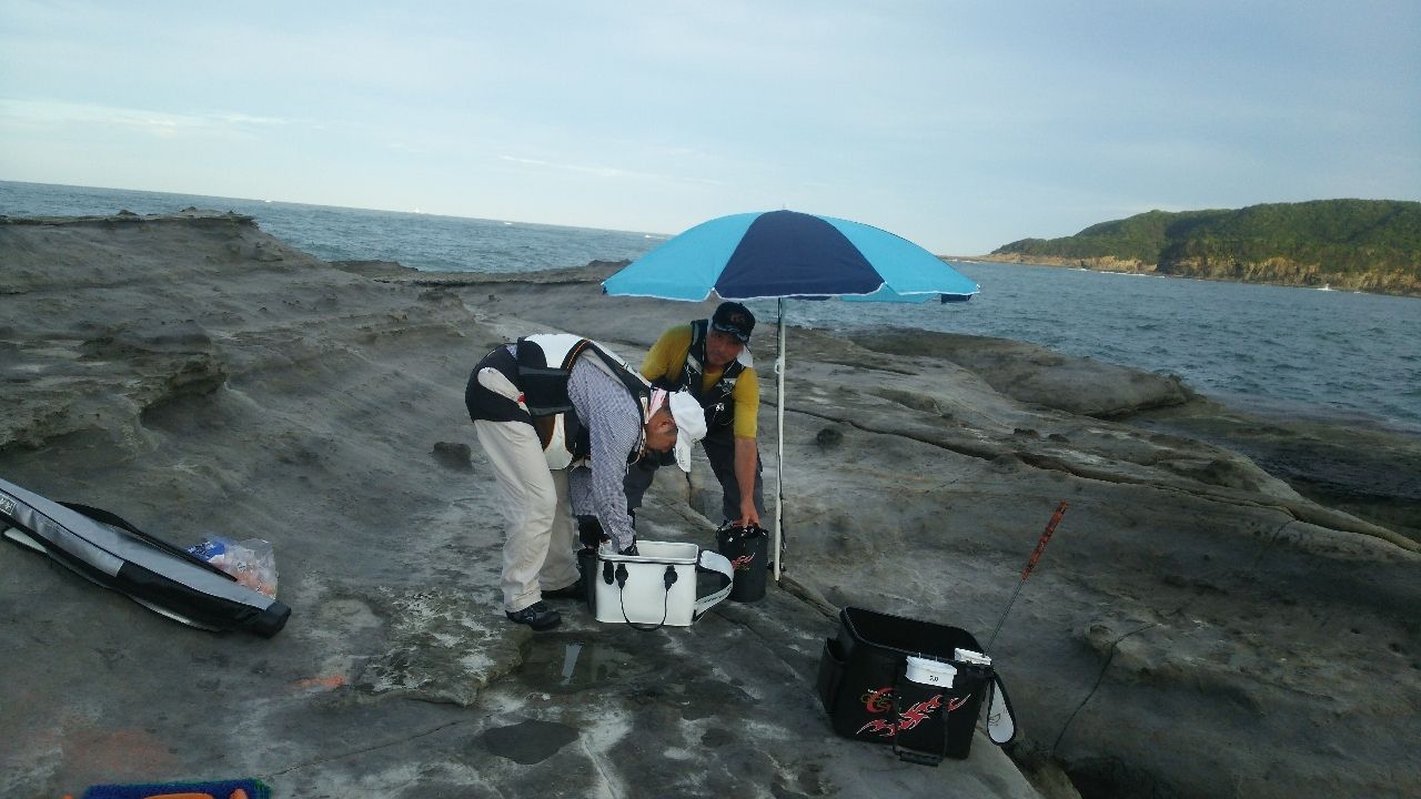 この時期の磯は 猛烈に暑くって身体に応えますが パラソルがあるから、大丈夫!!✌️