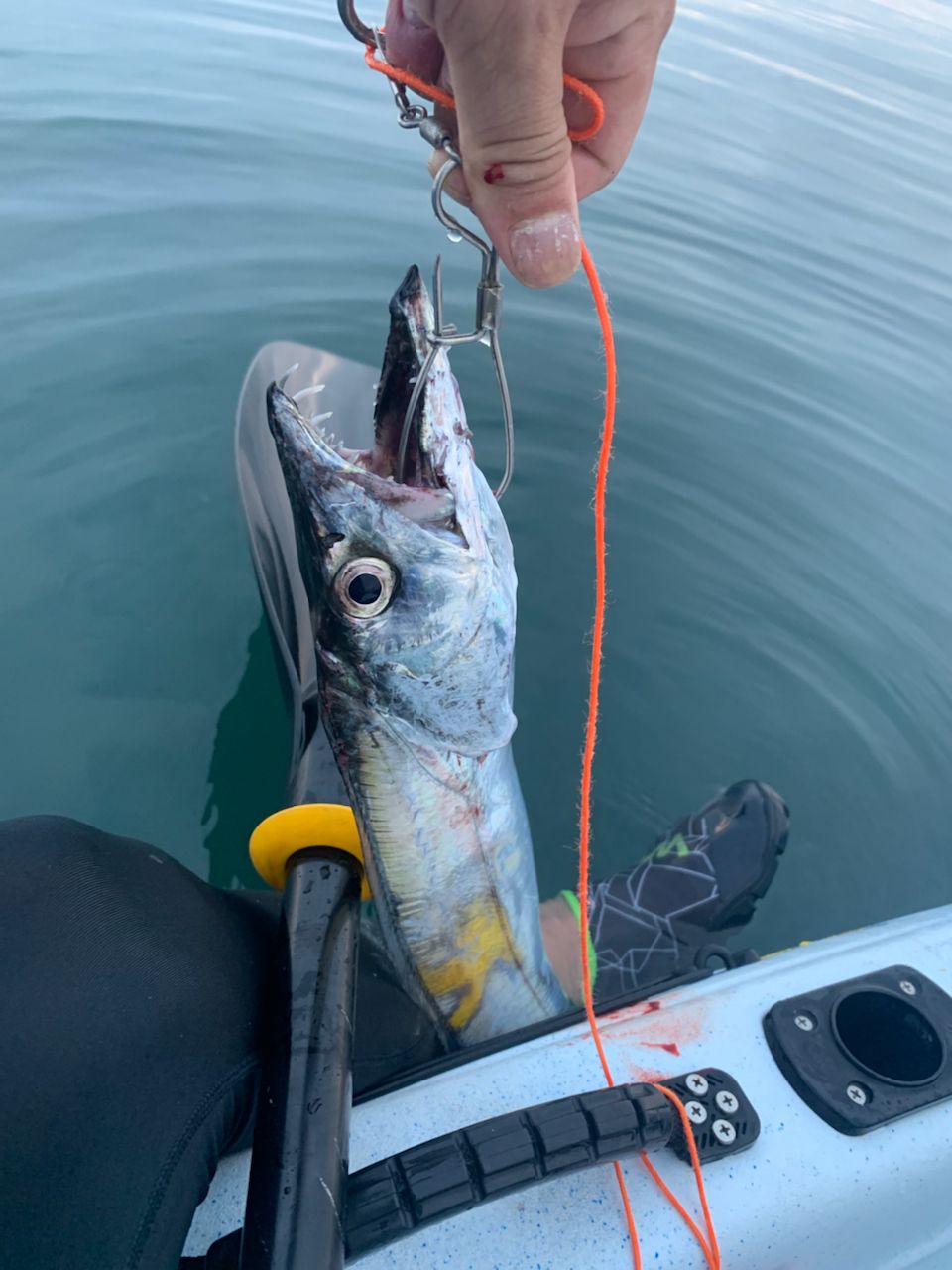 ノドグロ狙いで勇んで出るも、朝イチにタチウオ釣れたっきりアタリもなく、150m以深を80gでも着底とれる程に潮も動かずでした🤣