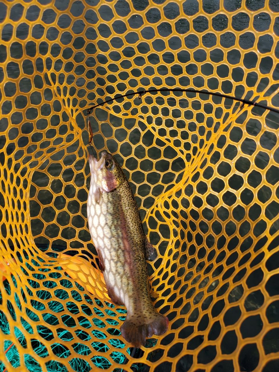 今日は午前中の放流直後に赤金で25センチのニジマス。