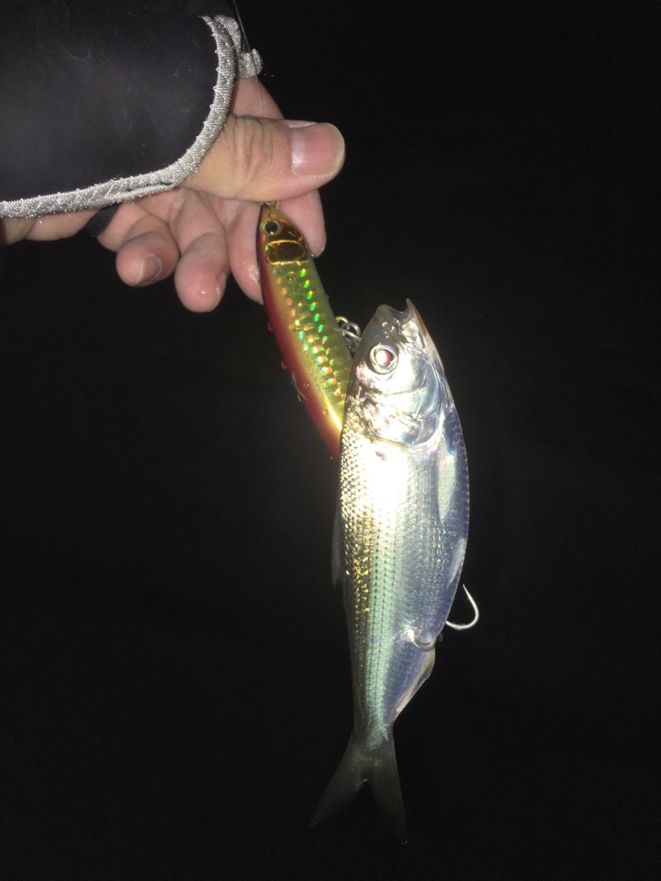8cmくらいのコノシロがベイトだったようです。下げの流れが弱まり出した頃にボイルも出てきたのですが…寒すぎです🥶