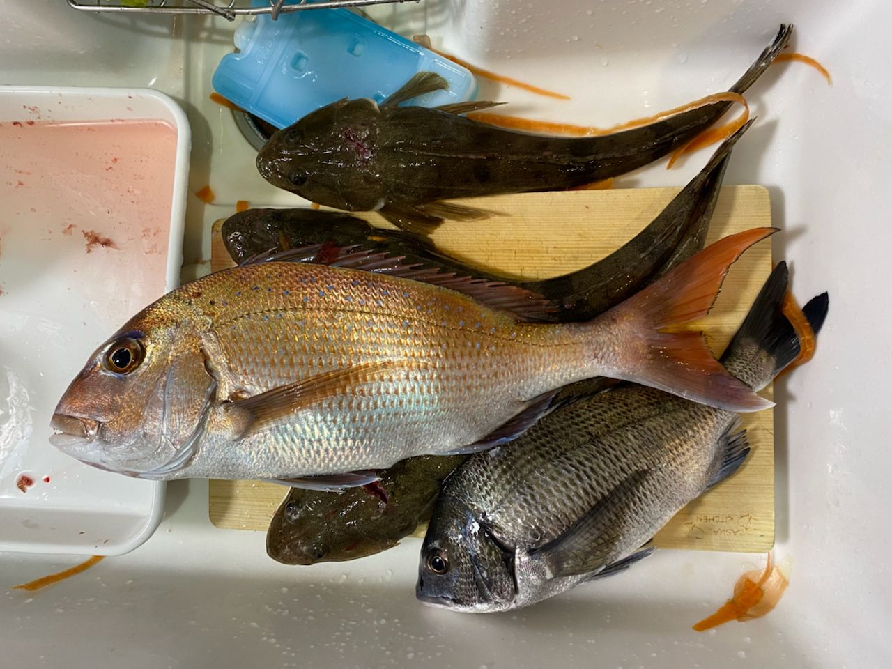 50cmのマダイとマゴチ1匹がオモックで釣れました。
