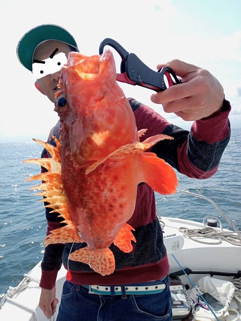 オニカサゴ…自分たちが釣るのも手を止めて、網係とカメラ係してくれました🤣