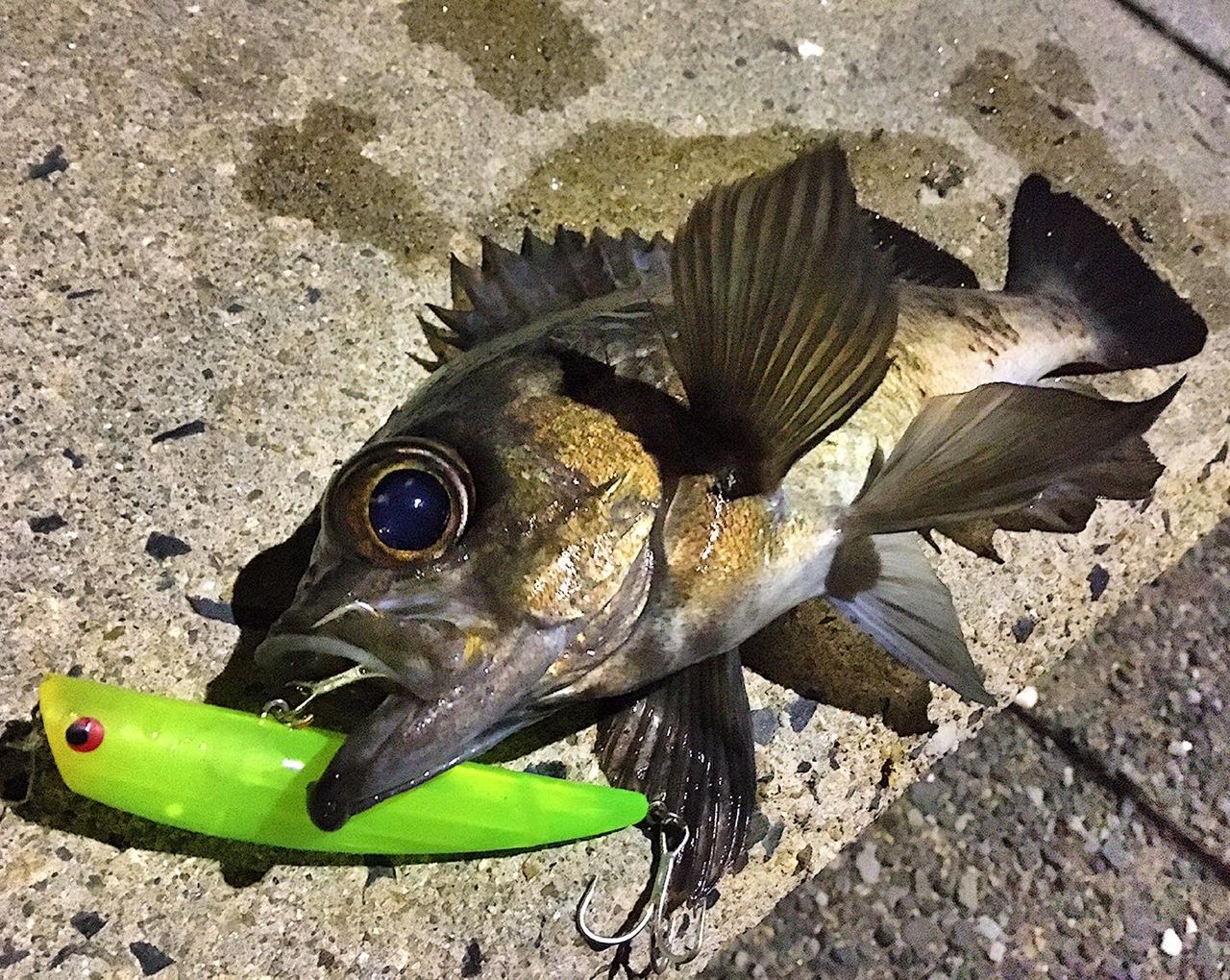 シーバス狙いがトップでデカメバルが来ました
