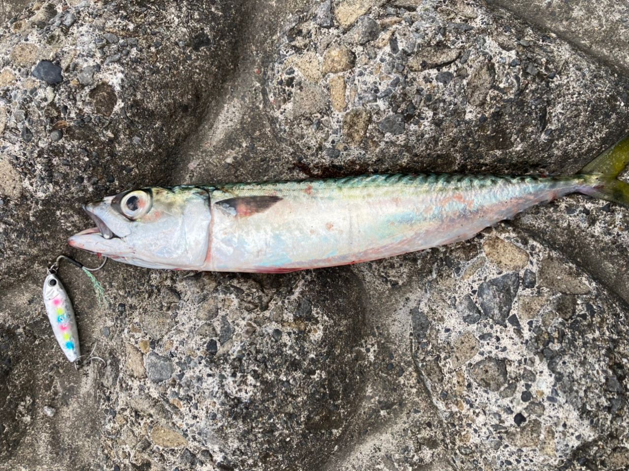 ワカシは小さいからか中々乗らず。ジグを20gにしてやっと釣れました。