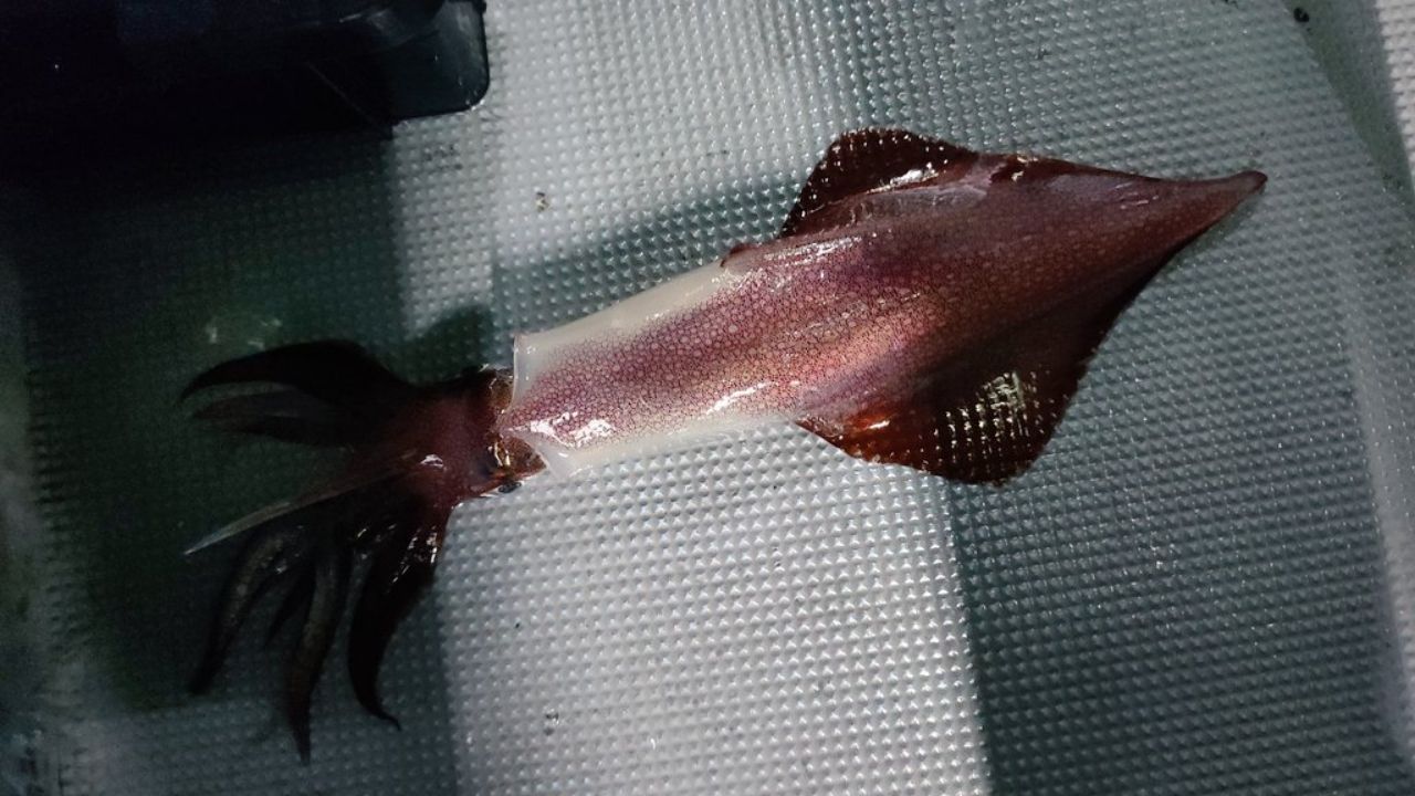 スルメイカのオスが結構釣れたんですが小さいのでリリース!