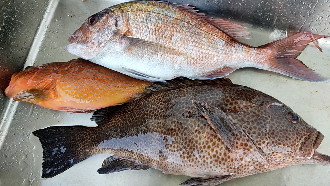 オオモンハタ1、真鯛1、キジハタ1。