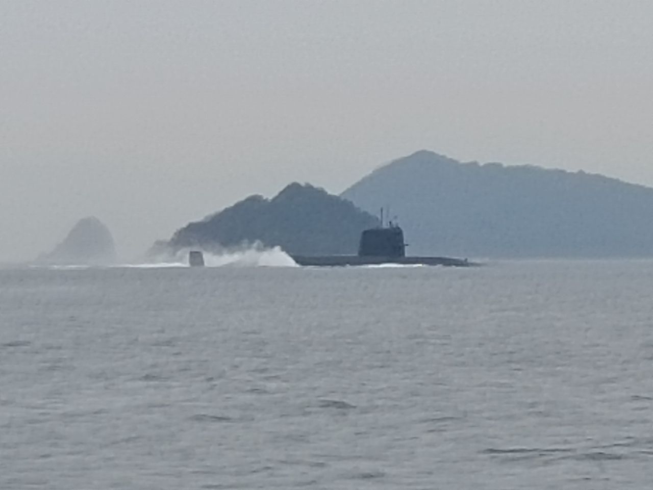 今日は船でタイラバ。津和地島と怒和島の間でヤズ二匹。タイが釣れないと思ってたら潜水艦発見。松山沖を通過するルートはこの島の間とは聞いてたけど見たのは初めて。水深の関係で海面を航行するらしい。この後、野忽那島の北の沖でタイが二匹。海は雨が降ってて写真はなし(*﹏*;)