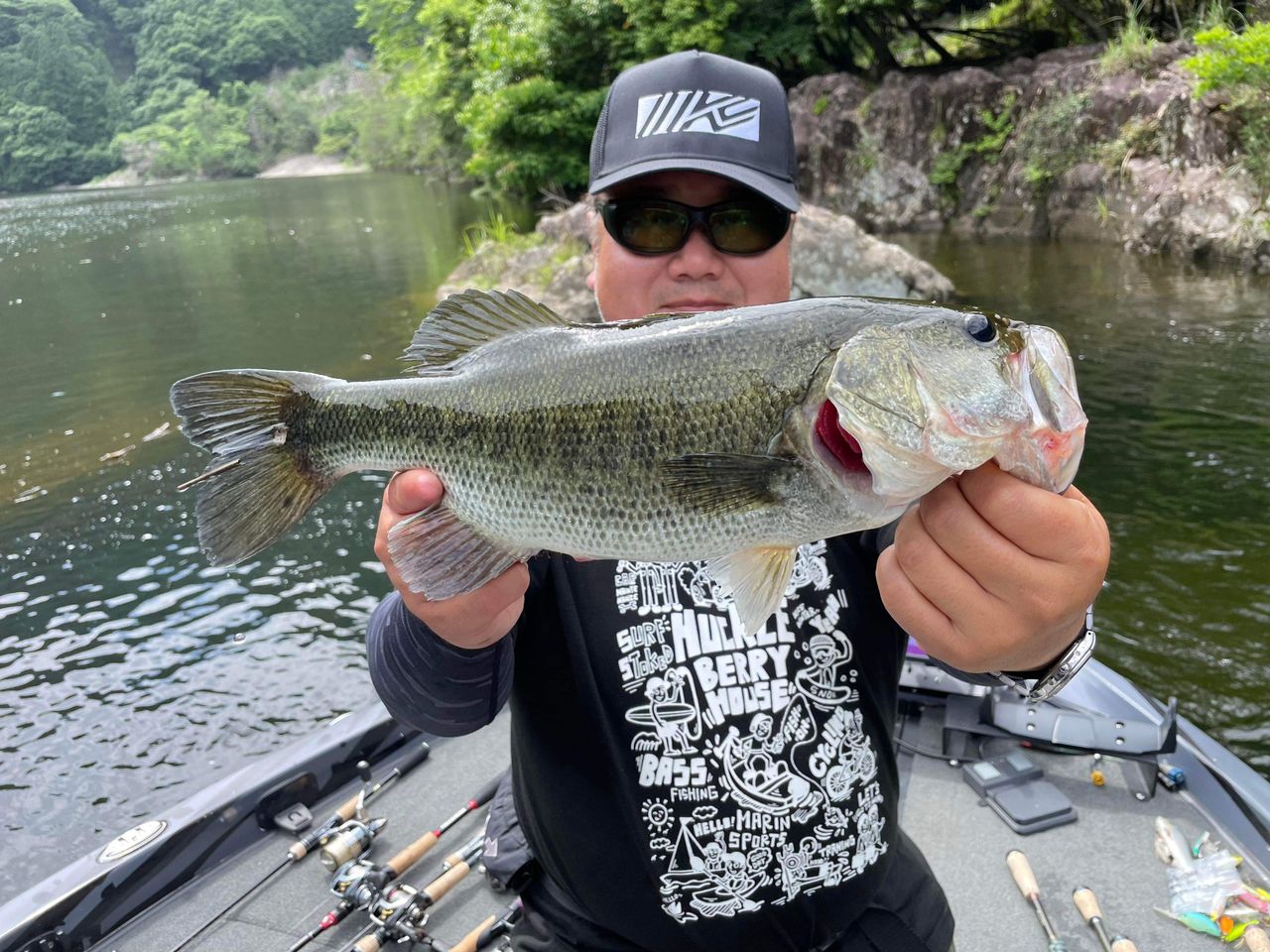 小鮎を狂ったように追い詰めるバスにマイラーミノーの瀕死リグでボイル撃ちでズドン。ラー様もズドン。