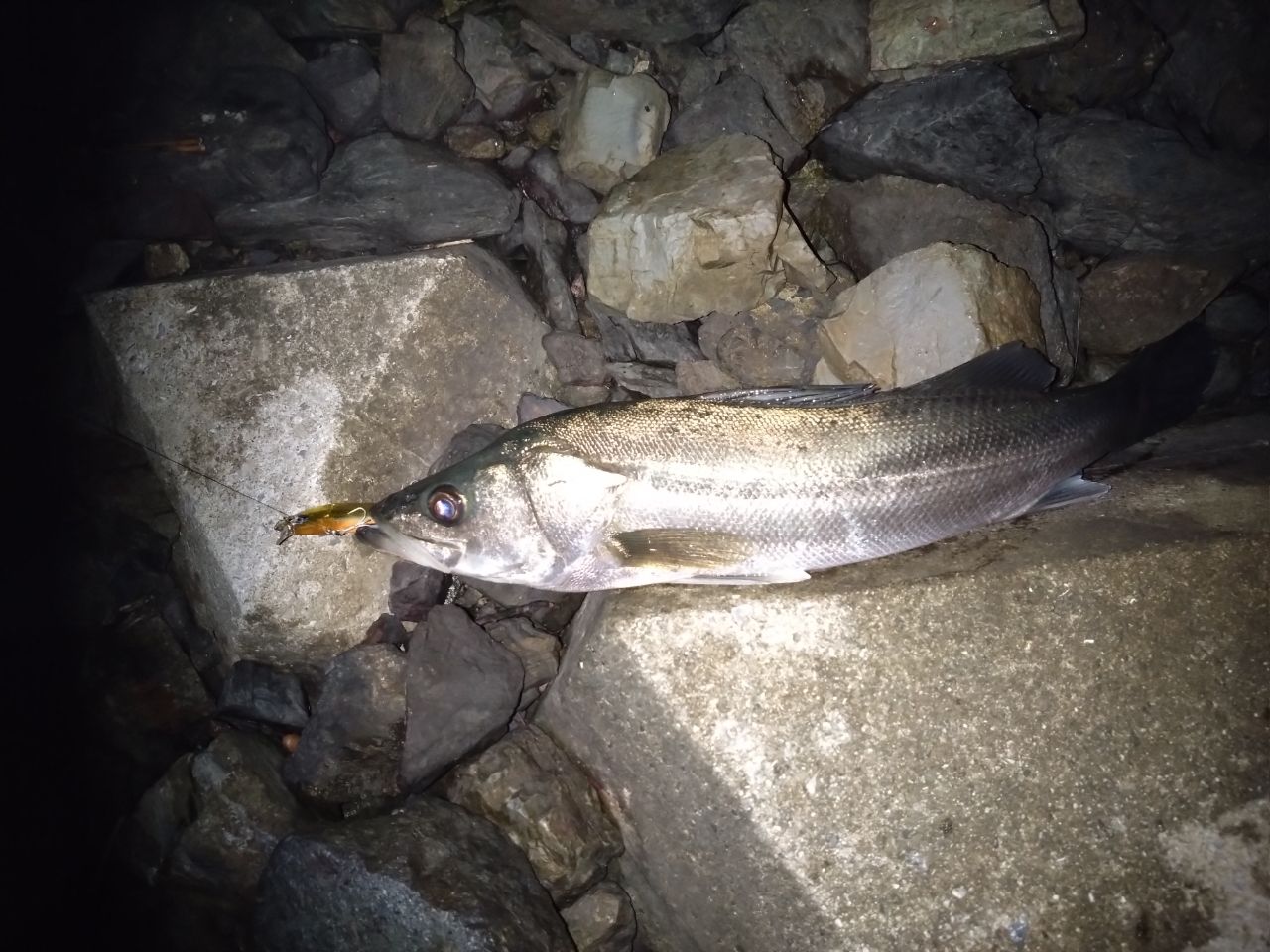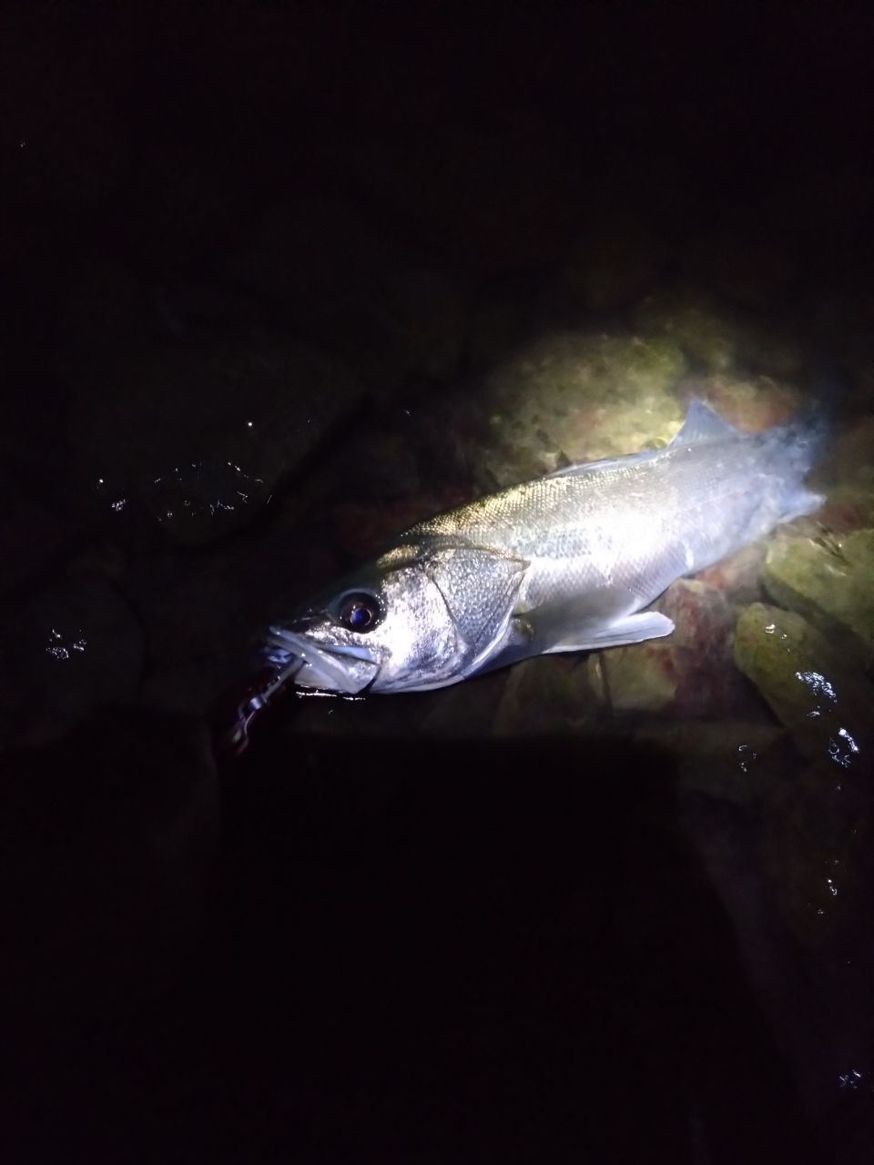 久々のシーバスがグッドサイズで驚きました〜!これの前に同サイズくらい大きなボラがかかったので、はねないから「またボラかぁ…!?」と思ってあげたら立派なシーバスでした🤩