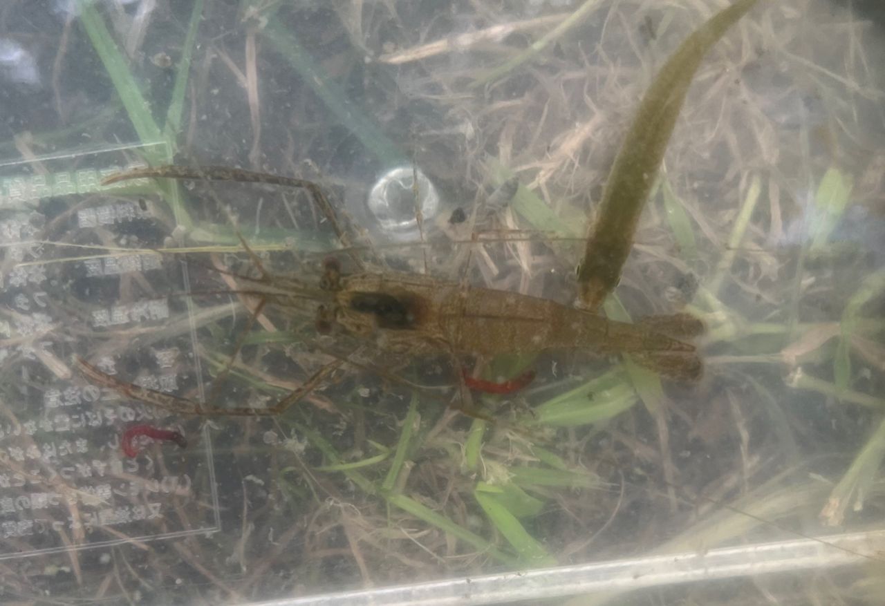 クチボソと違ってヌルーっとあたるとエビちゃんだなーと思ってあげてみると、ちょっと大きめ(ヌマエビよりはね😅)で、テナガエビちゃんですかね?