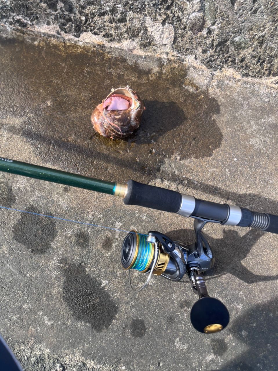 ブッコミ釣りをしていたらオニヤドカリが引っかかってました。大きなハサミがあるのに警戒して貝殻からでてこなくて性格は臆病なようです(笑)