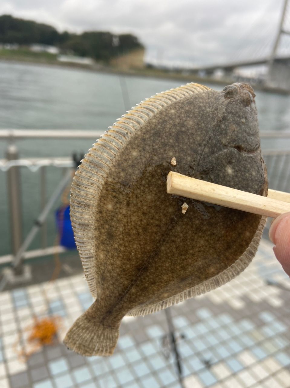 アサヒアナハゼ2匹とカレイの釣果です。今度から撮影用の箸と餌つけ用の箸分けようかな?フグも毒とか怖いのでフグ用の箸も用意したほうがいいのかも?