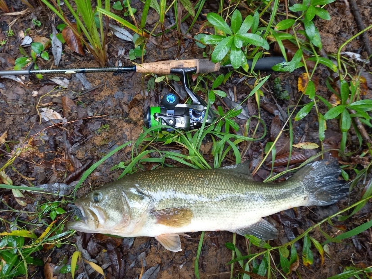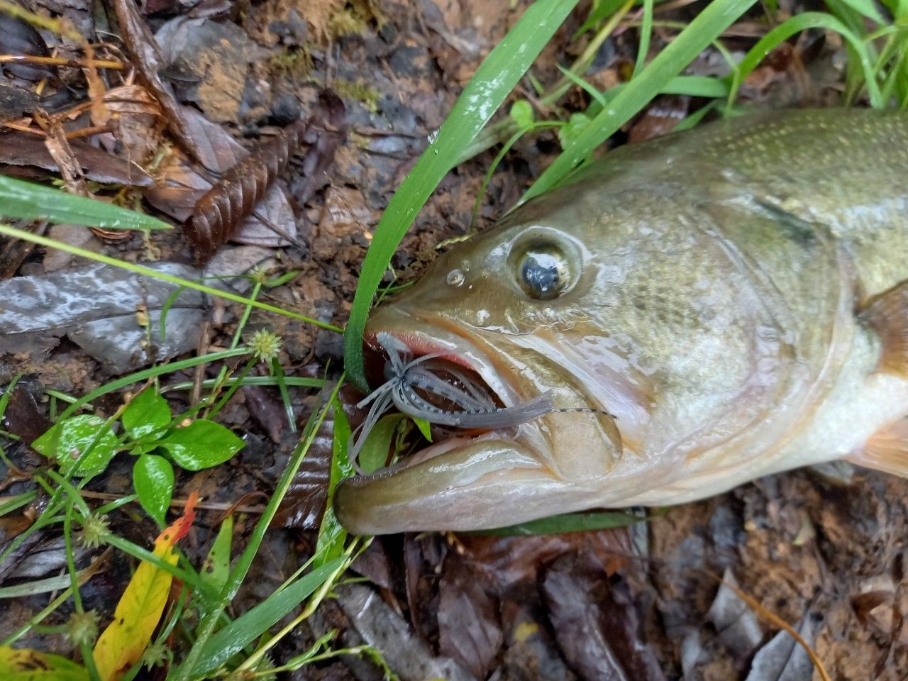 まだ雨がちらほら降って、激寒の野池でしたが流込みにエサを食べに来てたデカっガリバスをサイトでしとめました🎵