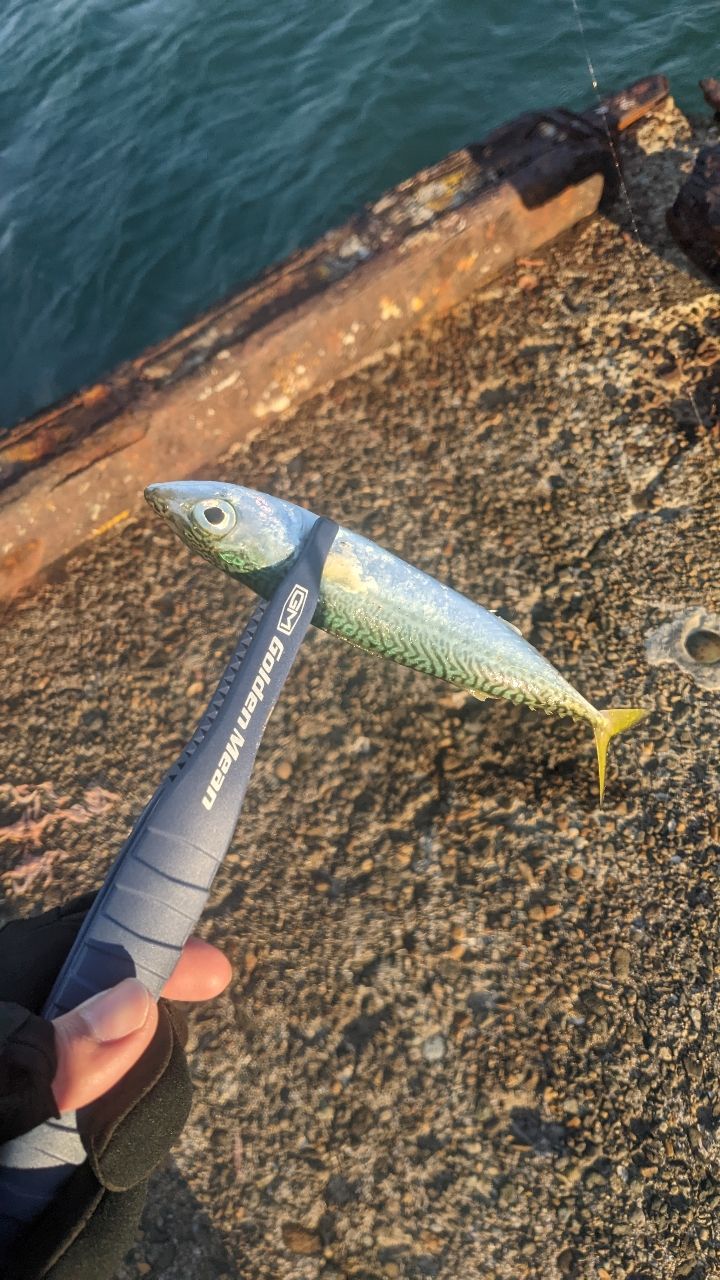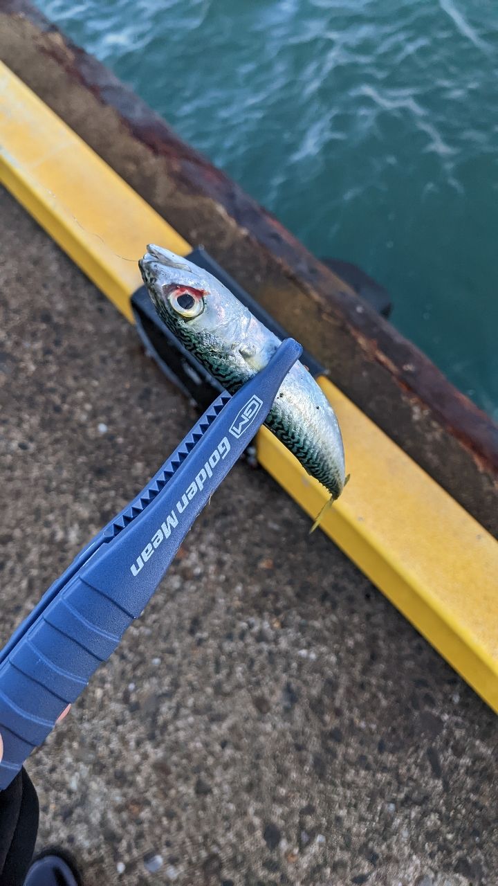 強めの横風で中々ラインテンションが取れず苦労しましたが、サバが釣れてくれました(^^)