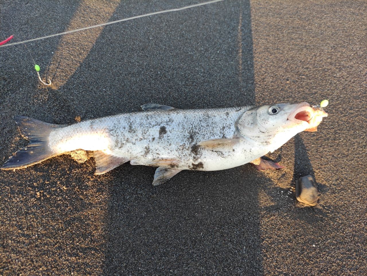 一発目にアイナメがきて幸先調子良い!と思ったが、次の景気の良いアタリはウグイさんで不穏な空気😱…。