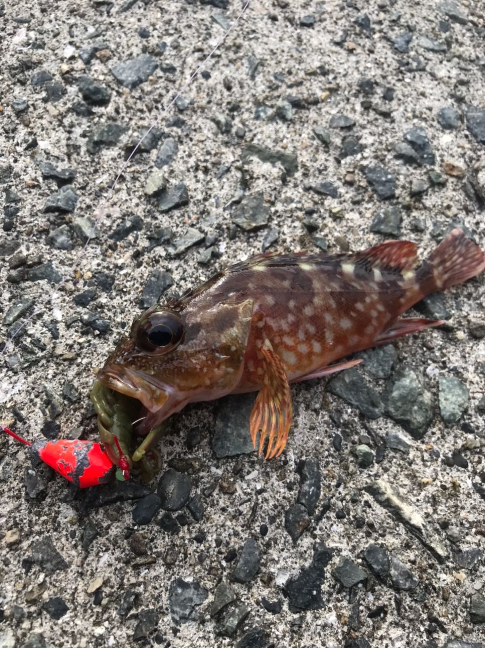 防波堤のヘチ際、穴釣りで狙いました