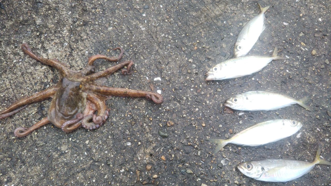 けれどもまたまた親切なおじさんがあこがれのタコと貴重なアジをくれました😆