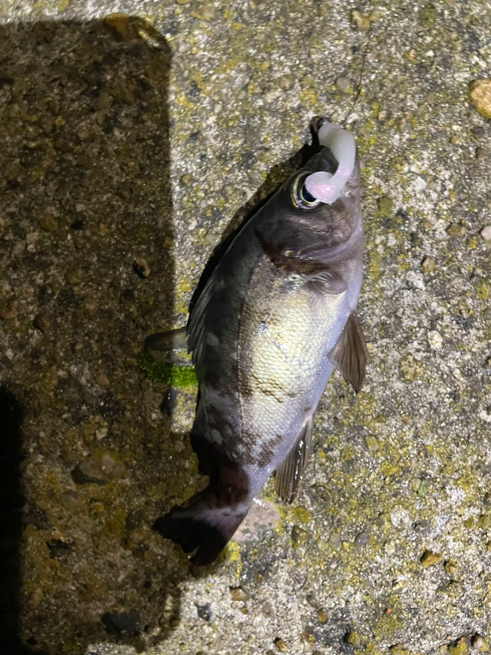 私はアジさんばかりかかって、そんな設定してないし強引に寄せるから手前で抜ける。まぁとりあえず写メ用釣れたのでゆっくり、してたけどあんまり釣れないから早めにポイント移動するつもりが、まったりと話しながらこのポイントだけで日付が変わった。。