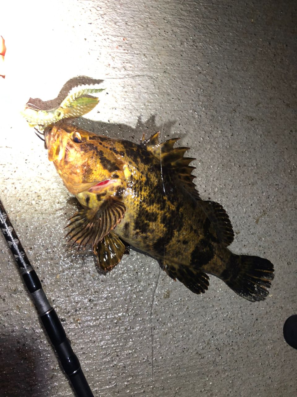 久々の釣りで、釣れたことに興奮しすぎてフィッシュグリップ使うのと、フックの外し方忘れてました