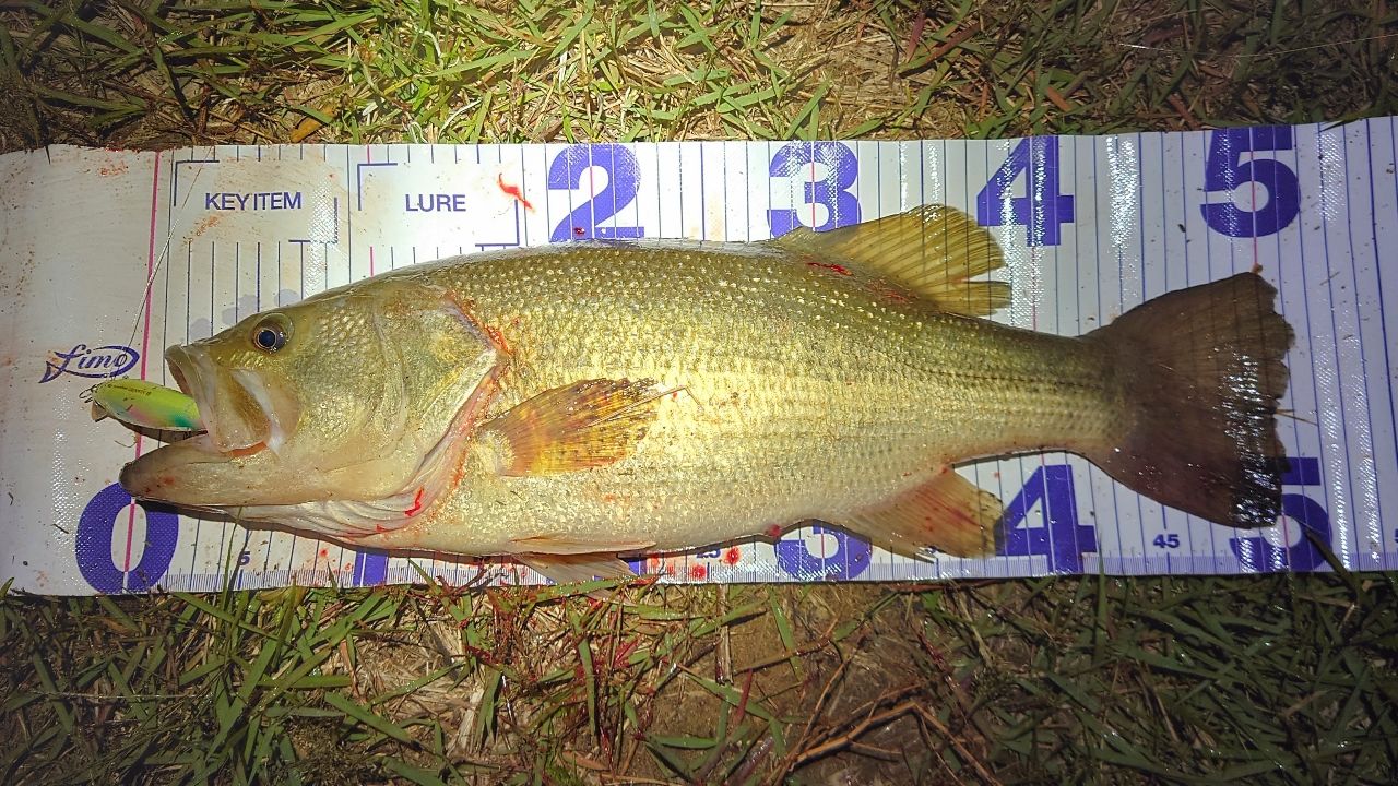 初ブラックバスだったので一応写真撮ろうとメジャーあてたらランカーありました😇