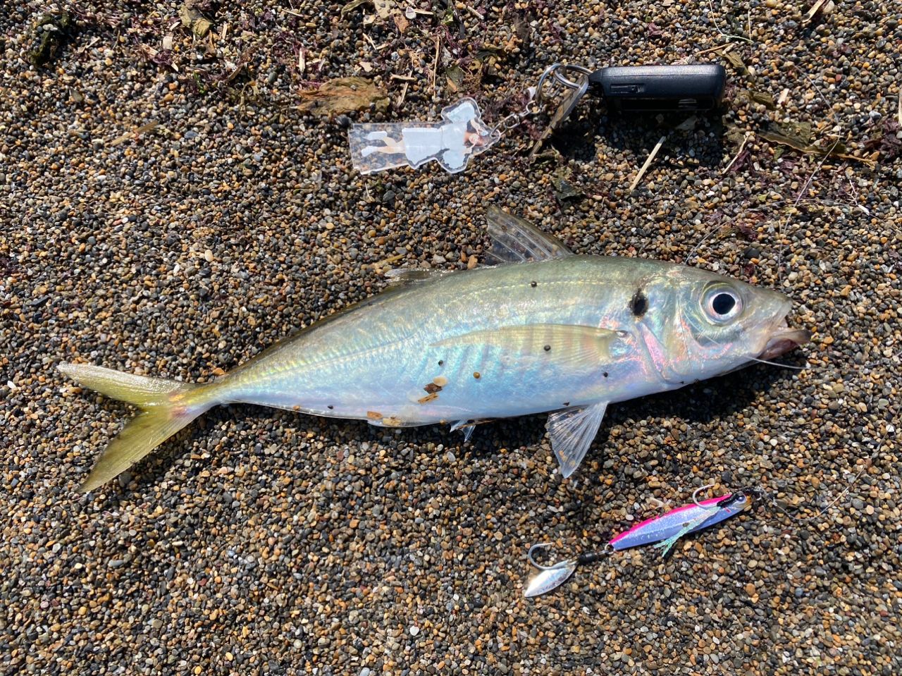 とにかく遠投してたらまさかのアジ!