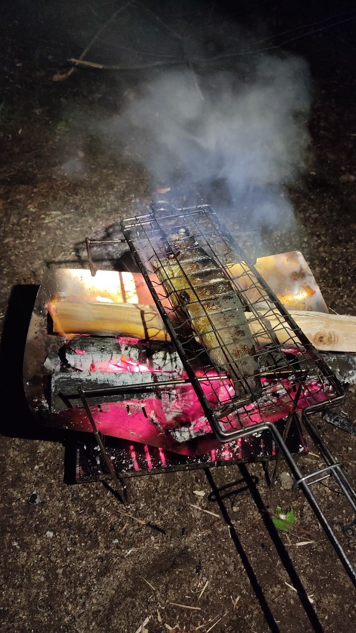 夜はニジマスのマキシマム焼き!