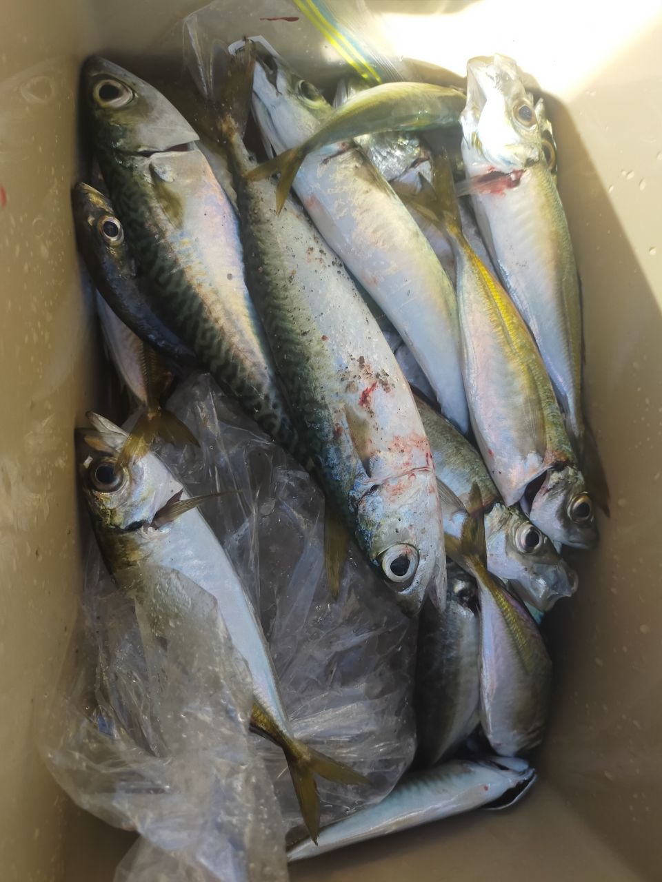 今日は朝ガシラが釣れて、それから場所を移動しサビキ釣りをすると大漁にアジ・サバが入れ食い状態でした😆