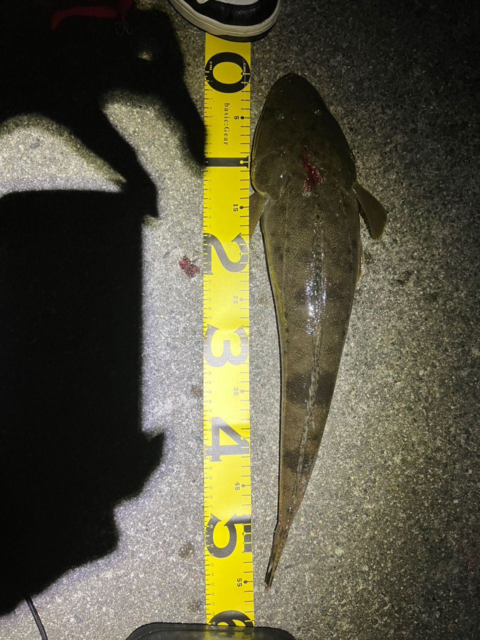 16時ごろから投げるも当たりなしが続き、辺りが暗くなってきた時にただ巻きしてるとバクんときたー🤩と思い合わせて引き上げるとマゴチでしたー😚