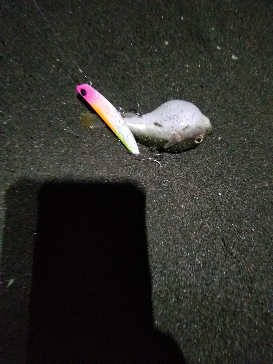 今日はフグ1匹のみでしたが、浜辺をライト照らしながら歩いてたらスルメイカ?が2匹打ち上げられてました😱💦あとなんとクワガタも居ました!そしてカエルも居ました!どんな海なんだ💦