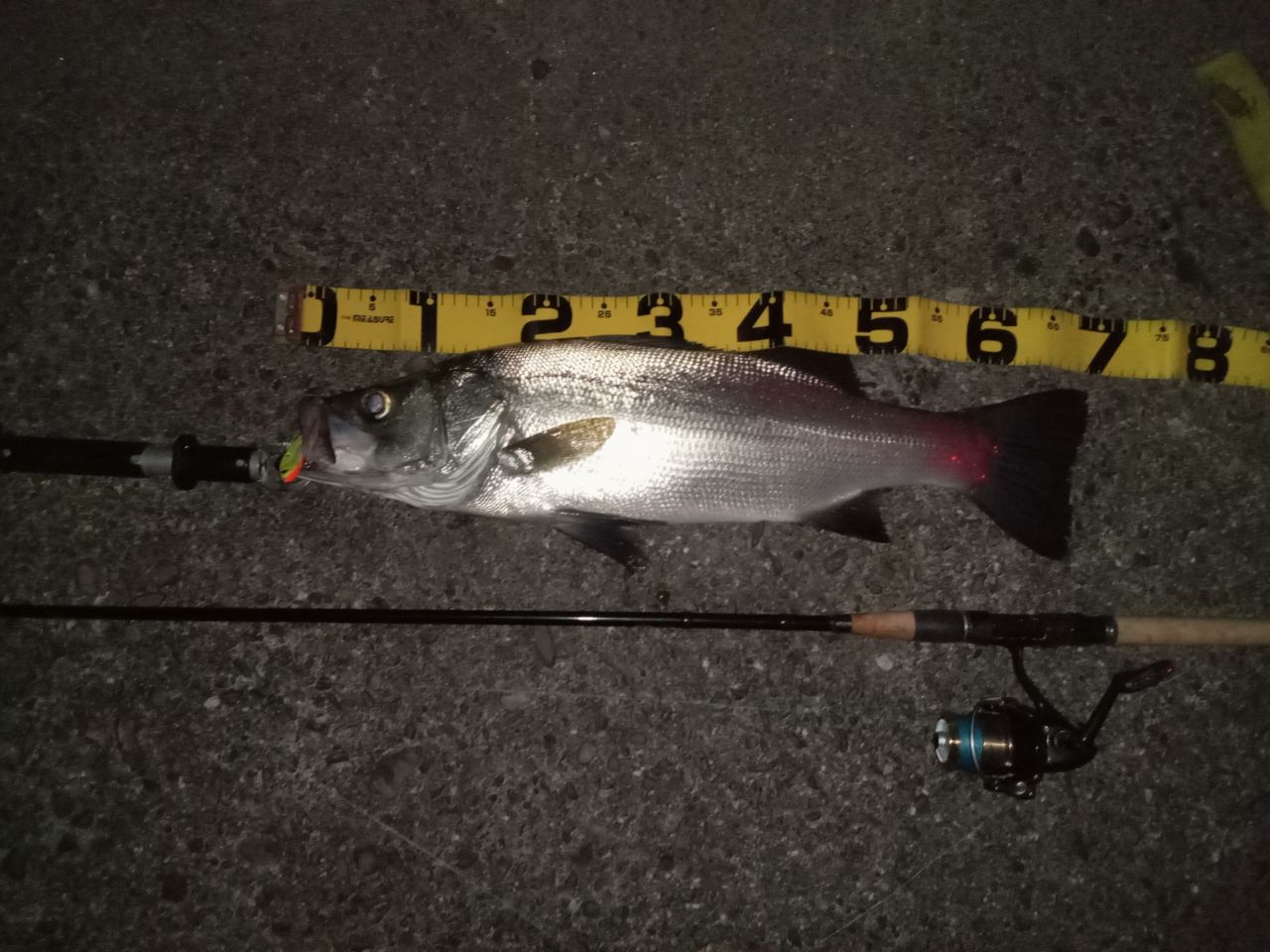 日が沈み堤防先端テトラにて数投キャストを繰り返してたところ
