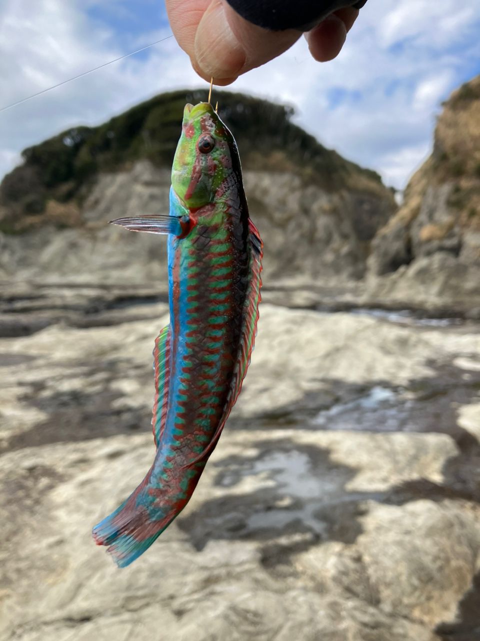 パパはニシキベラを釣り、こちらも観察。このベラはド派手で色づかいが美しい✨