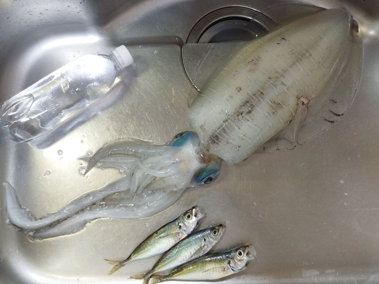 泳がせ用のアジ釣りの最中、サビキに掛かったアジにまさかのイカが掛かっており呆気なく初イカゲットか!?と思いきやさすがにタモ入れ前に逃げられる😅