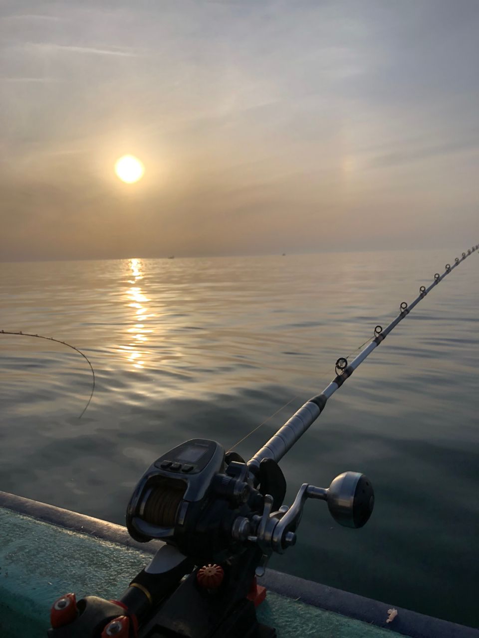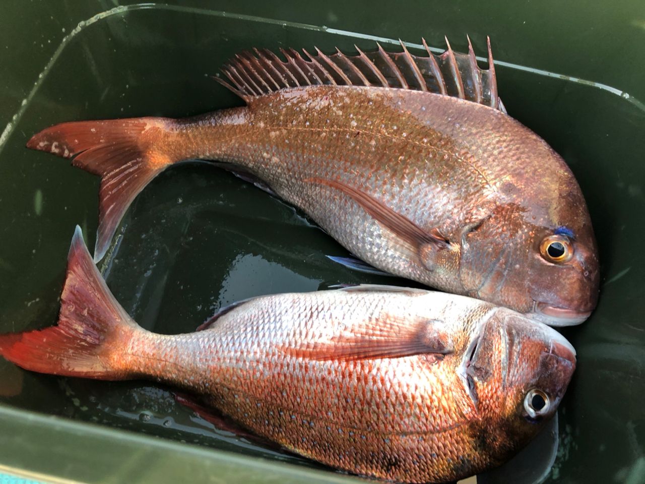 コマセ真鯛は水深5メートルにビシを全員固定しスタートしました「あまりコマセを撒かないで下さい 撒きすぎると船の下まで真鯛は来てくれなく反応が消えてしまいます」と、船長さんのアドバイスが入りました 乗船したアングラー皆様辛抱強く竿先を見つめていると周りで真鯛が釣れて私の竿にもヒットしました