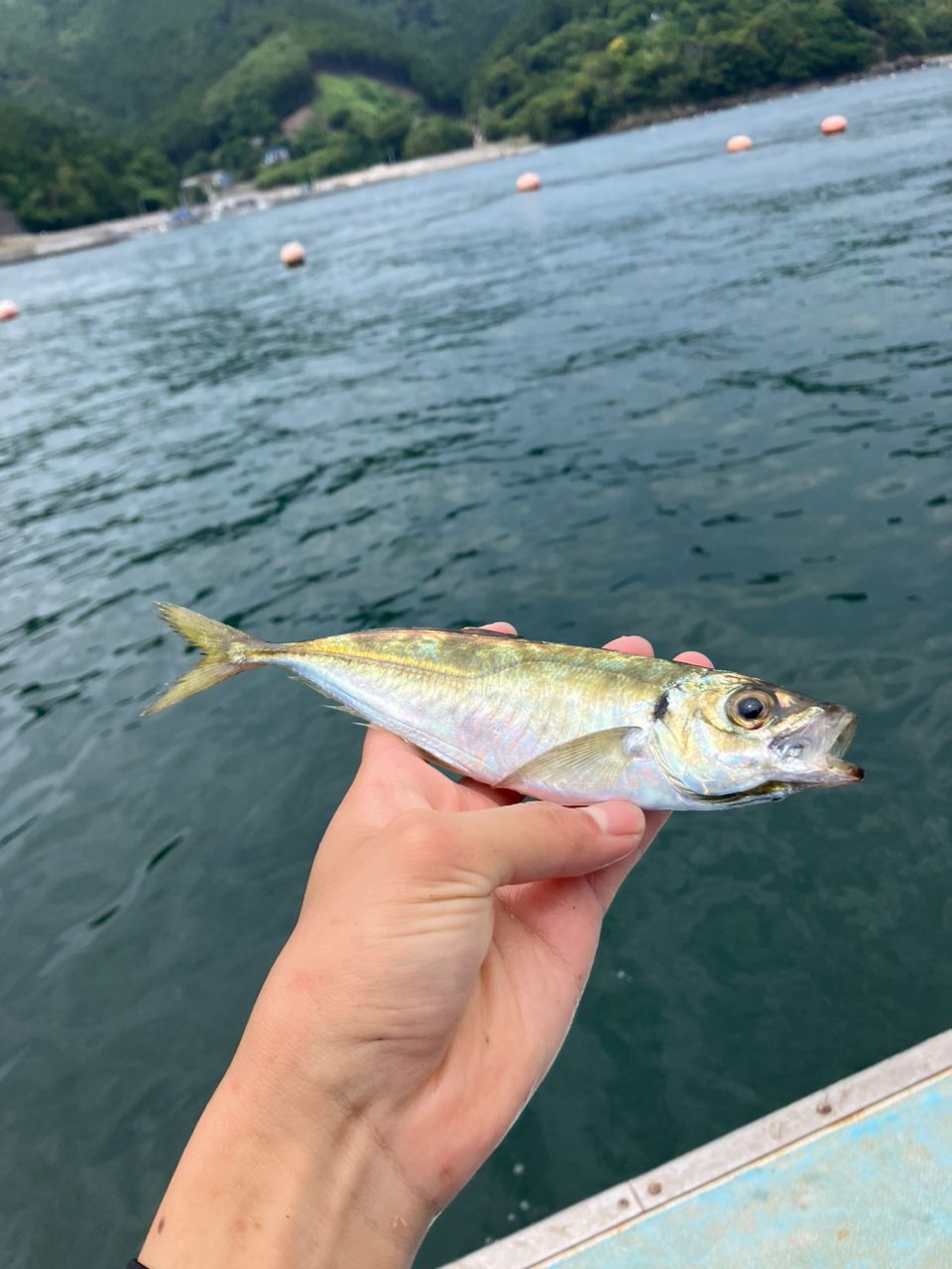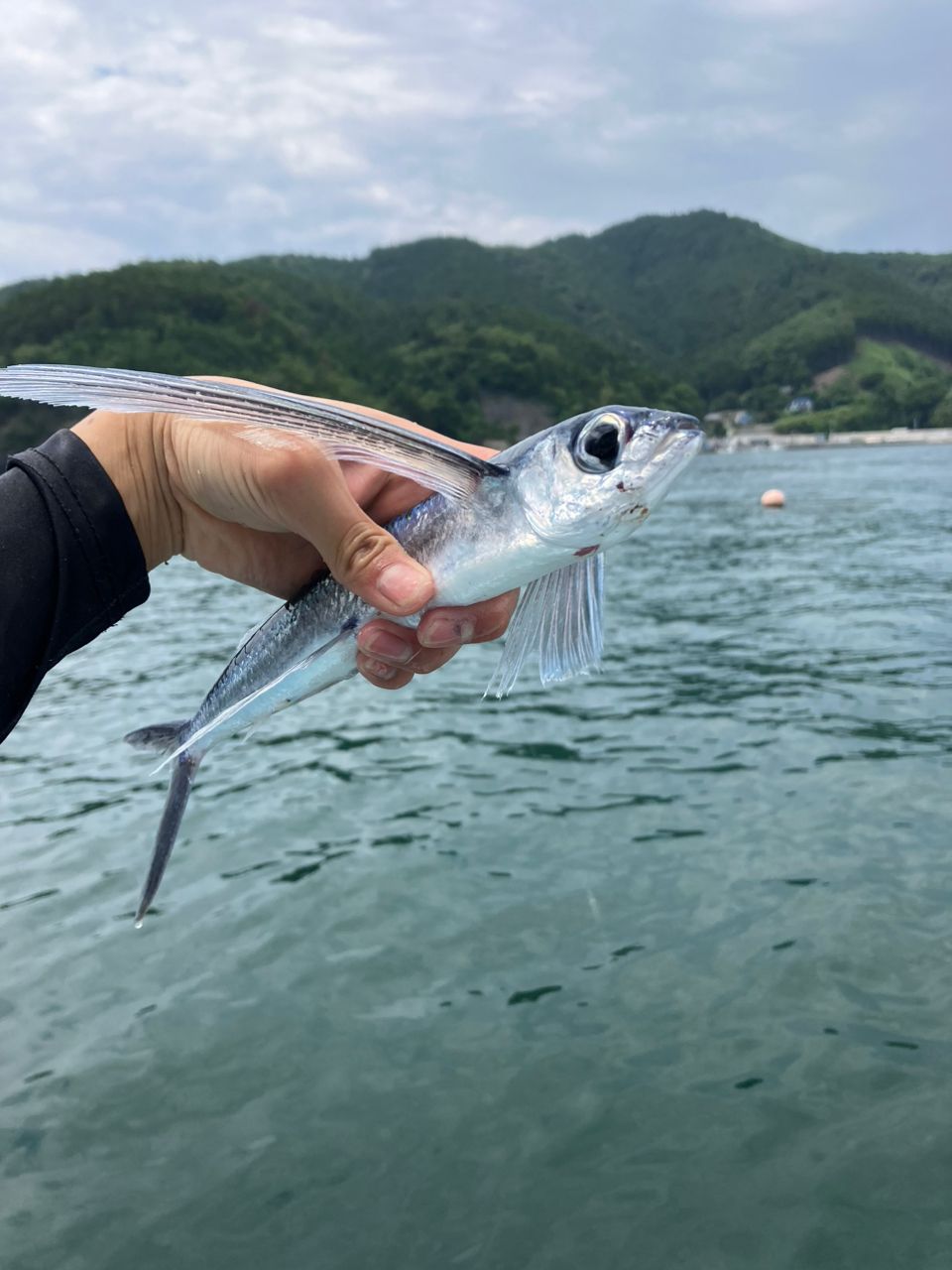 海上作業の休憩中にサビキを垂らしたところ釣れました!初フィッシュ✨ヒレが綺麗でした