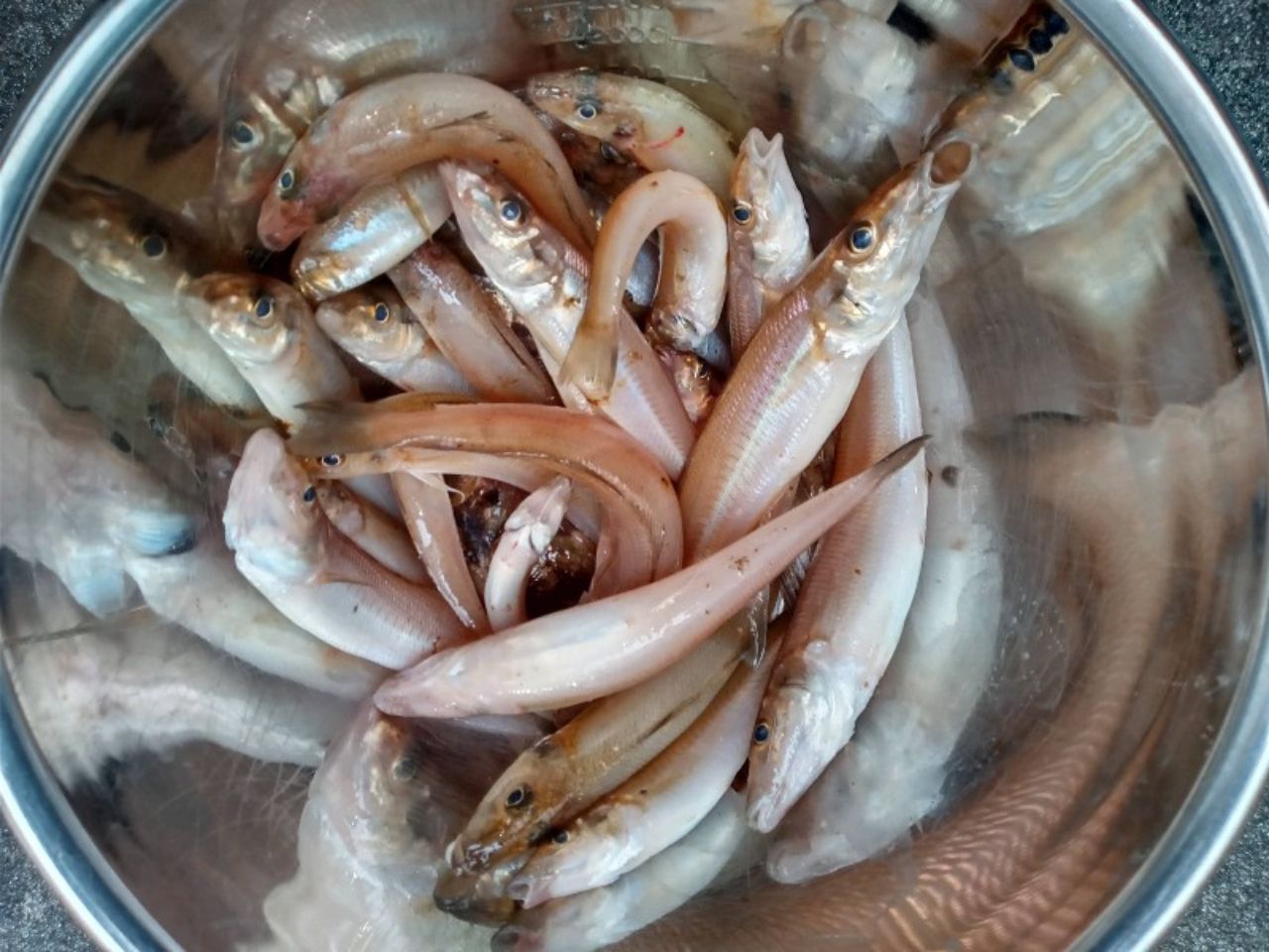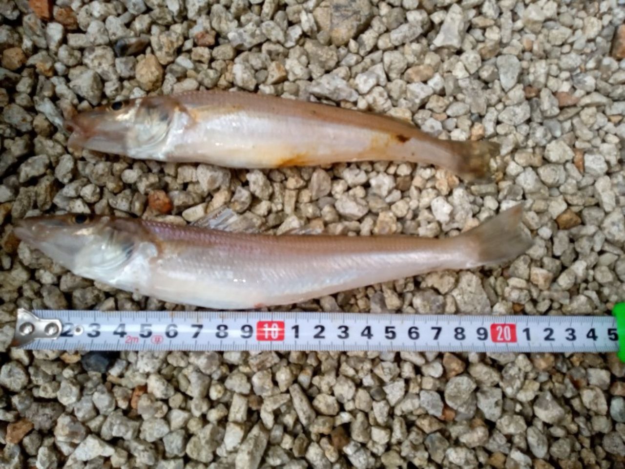 海の日夜明けから10時過ぎ迄、吉崎海岸周りでキス釣りしてきました。2人での釣果です。潮回りが良くなかったのと、まだ濁りが残っているようで食いはイマイチでしたが、20cmも混じりました。ピンギス3割、10cmちょい3割、15cm超4割といった感じです。針掛かりの浅いピンはリリースしました。(マゴチも狙ってましたが不発)