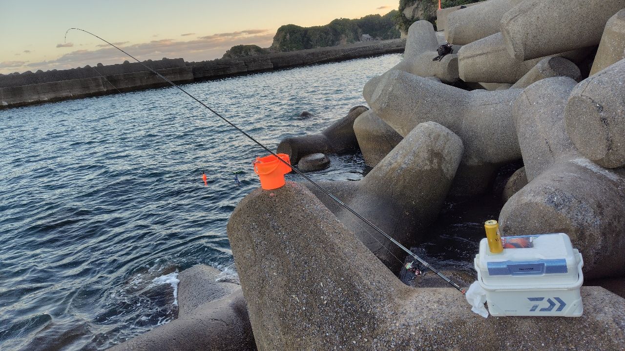 勝浦港を目指してましたが、16時までは釣り禁止なので松部港に行きました。潮も時合も良く、大漁の予感🎣