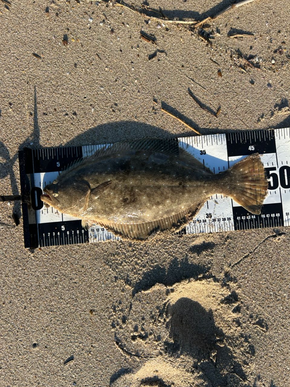 爆風大荒れの中シンペンでヒラメ2枚。