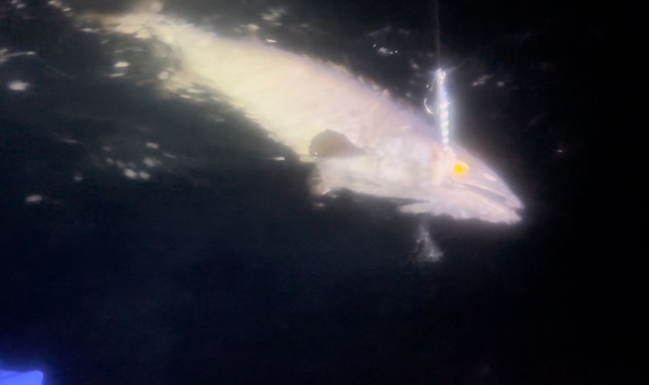 今回は夜間航行の機材や灯火が多くて船にあげれなかったので海へお帰り頂きました。やっぱ浅いと釣りやすいですね!
