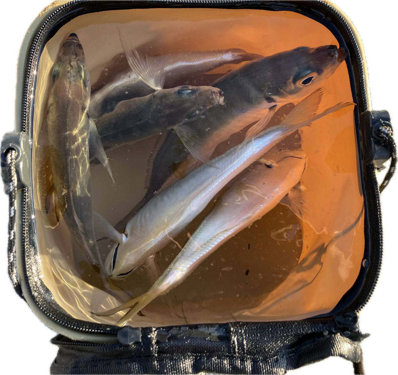 外海が駄目そうなんで方針変更、港内メインで徘徊すると笹濁りくらいで耐えている場所があり、そこで朝を迎えてアジ坊主を回避する。