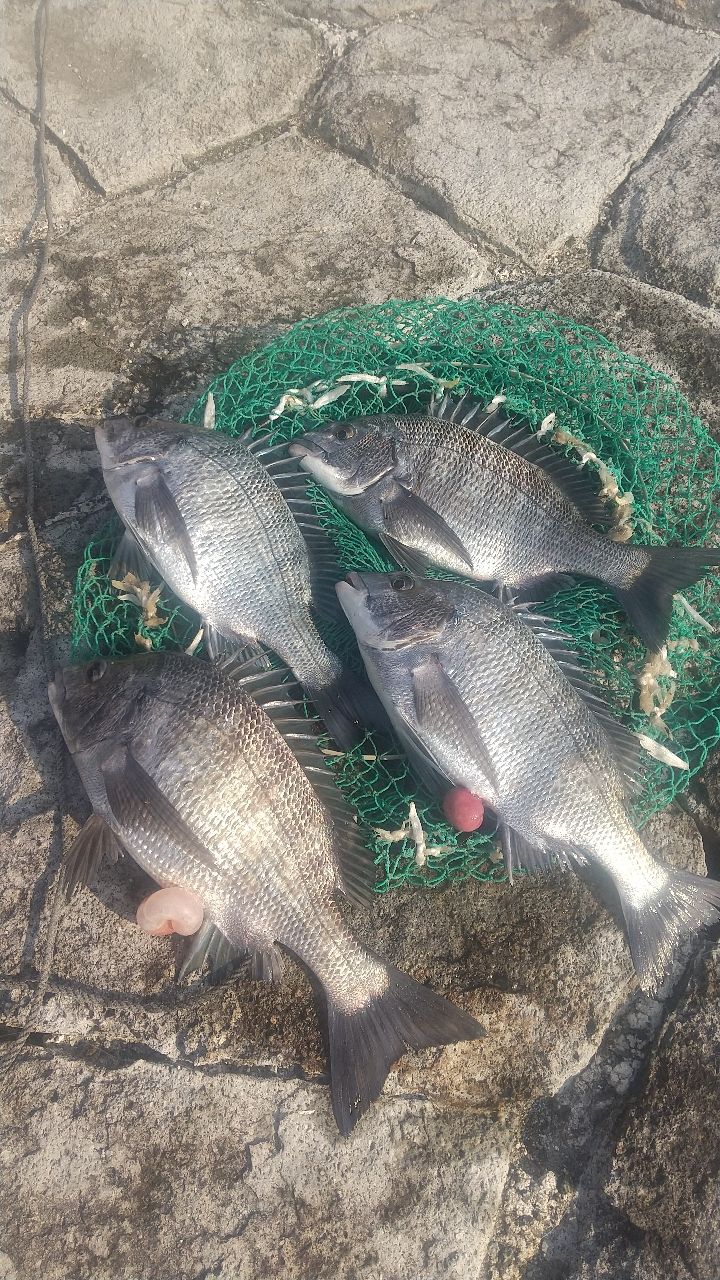 11時頃からのんびり竿出し😅ホント釣り日和でした!!良い〜季節ですよ😀西港、釣人多いだろーなぁーと思ってましたがテラス前はガラガラ😀バス停下も釣人少なくビックリ!!テラス前に入りました。満潮から下げ向かい…潮は右に左にコロコロ変わり、上潮も滑って嫌な潮😢我慢の時間が暫く続いて14時頃に沖の海底を這わせていたウキが一気に消し込むアタリ!!チヌがようやく回りだしたかポツポツアタリ😀いつもの3匹を釣って満足してましたが、まだ時間も早かったのでも少し粘って4匹目をずっと沖の潮下で掛けて終了〜〜。夕飯にお刺身で頂きます😅西港、まだまだもっと良くなると思います!!とにかく底狙いと、潮が緩んでいる時はチャンスですよ😀