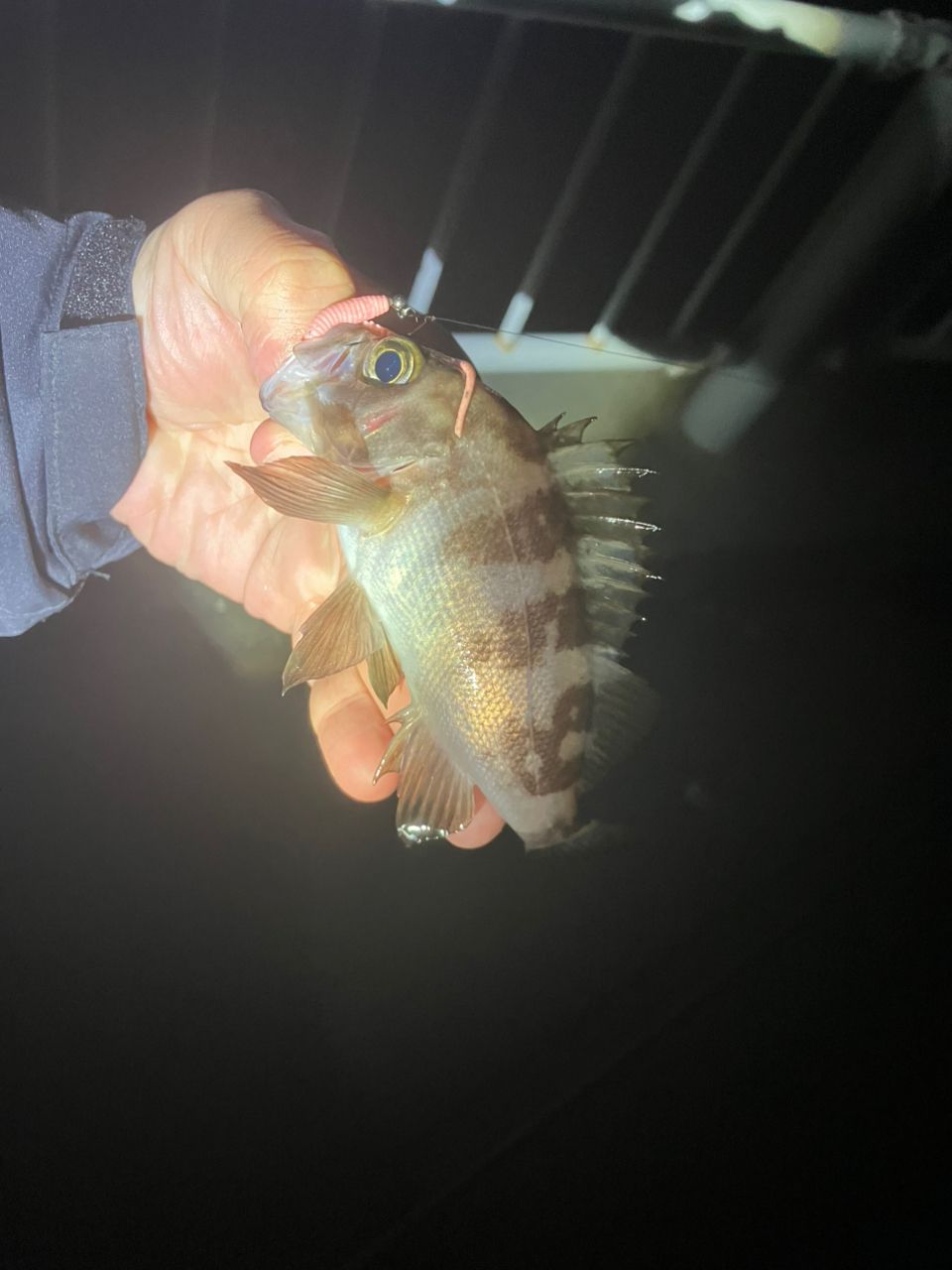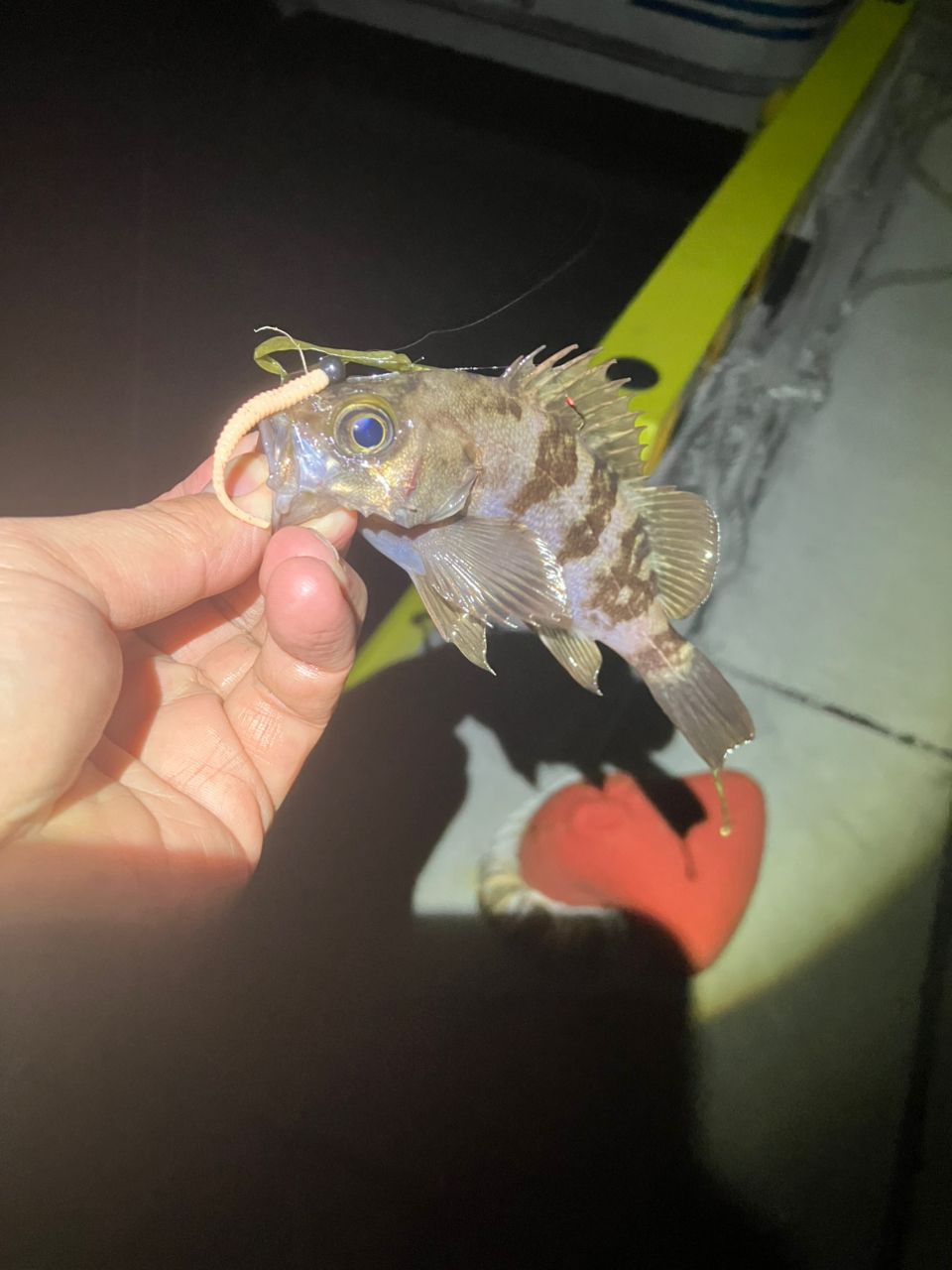 日が落ちてから船周りで小メバル遊び。