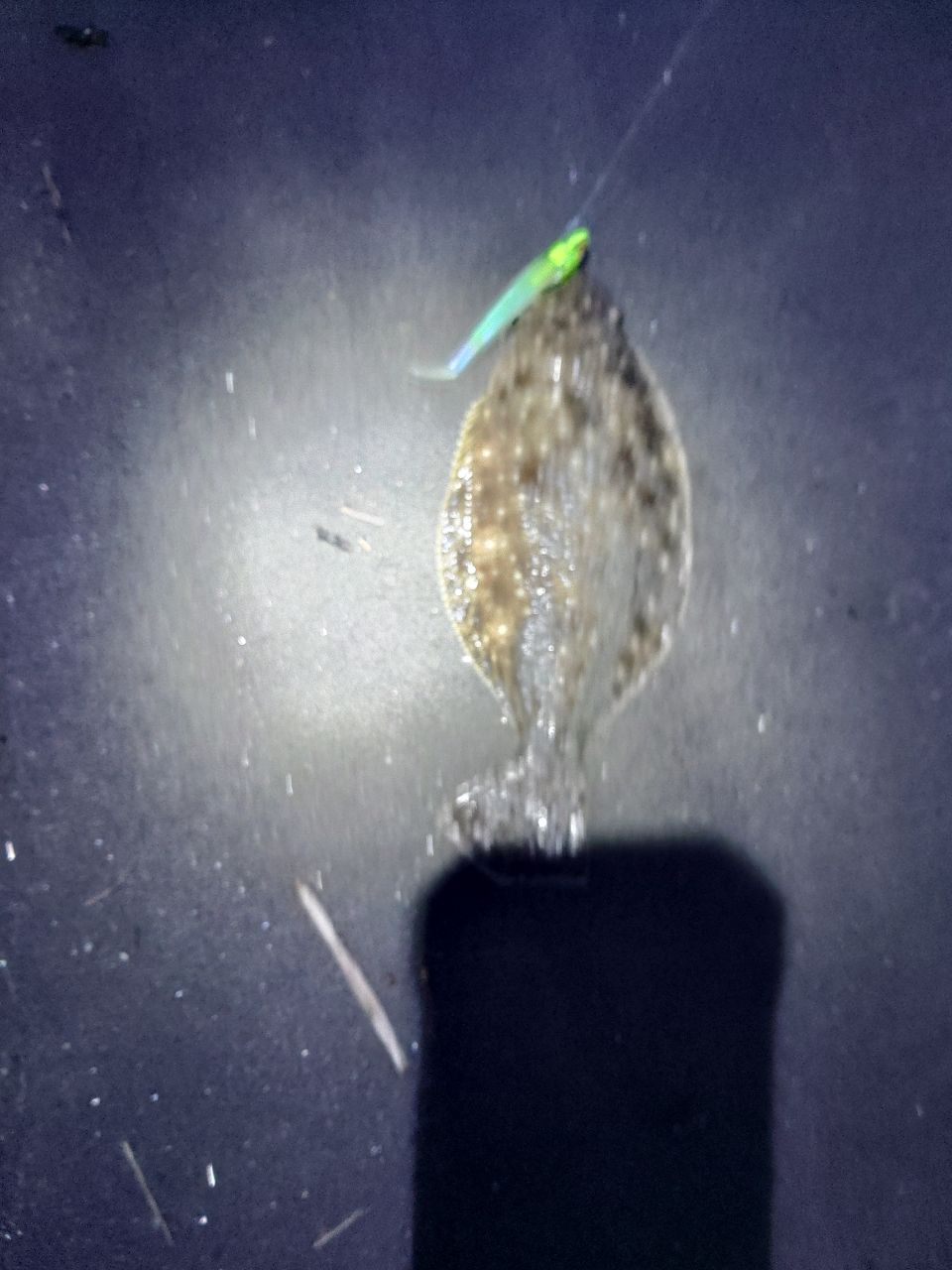 河口のサーフで投げてるとゴミでも引っ掛かったかなと思い引いてくるとヒラメがワームを喰っている😱