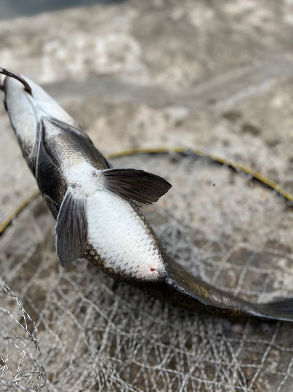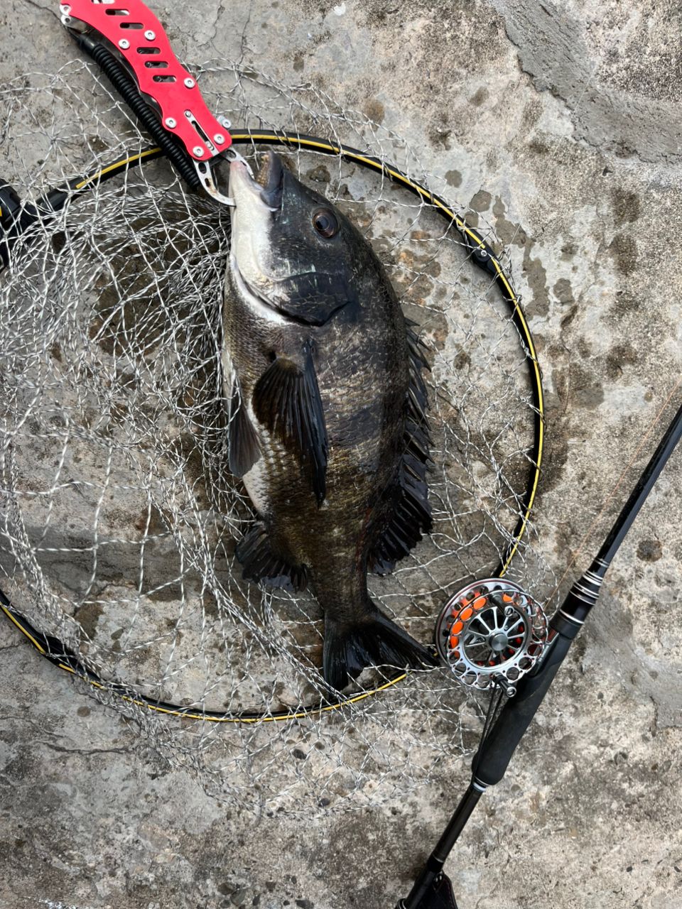 3月は寒波や体調不良、私用などで4回釣行するもPBのまま気がつけば本日24日。久しぶりの湾奥部訪問です。 7時スタートで南面を1時間落とすもアタリがありません。 ふと、前を打ったラインに変化! 初アタリはヘチではなく、竿下やや前の着底寸前で来た44cmでした。 お尻もまだほんのちょっと赤くなっただけでしたね。