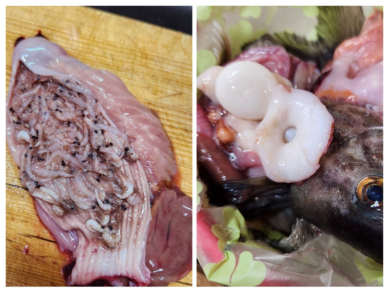 ホッケは大きいのは少ないけど群れが凄い瞬間も時々ありタップリ釣れました。同じ日、東積丹はホッケも全く居なかったらしくこちらはラッキーでした。ホッケの胃袋に大きなタコの吸盤が入ってるのもいました😲サクラマスはオキアミがギッシリ入っていました🦐