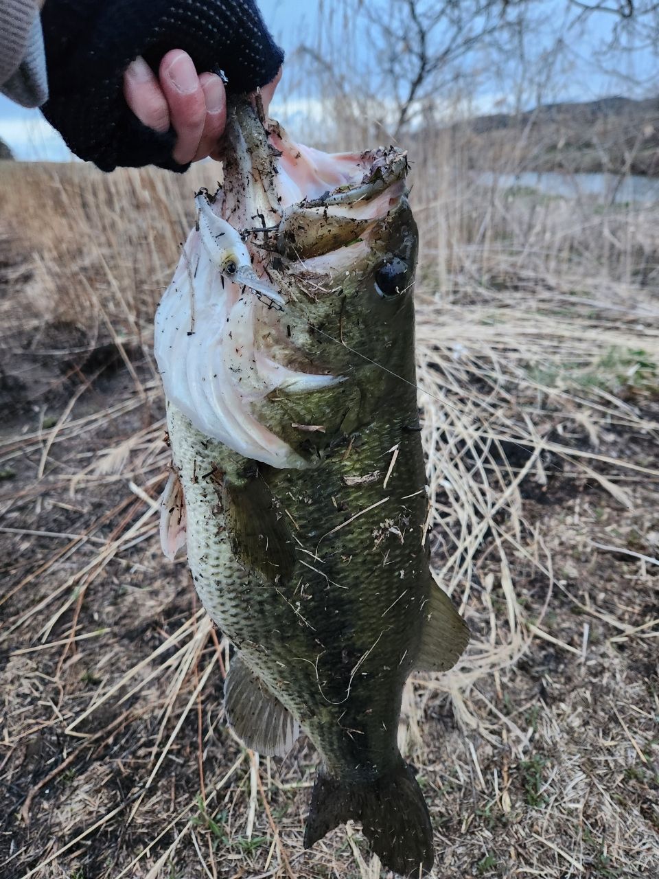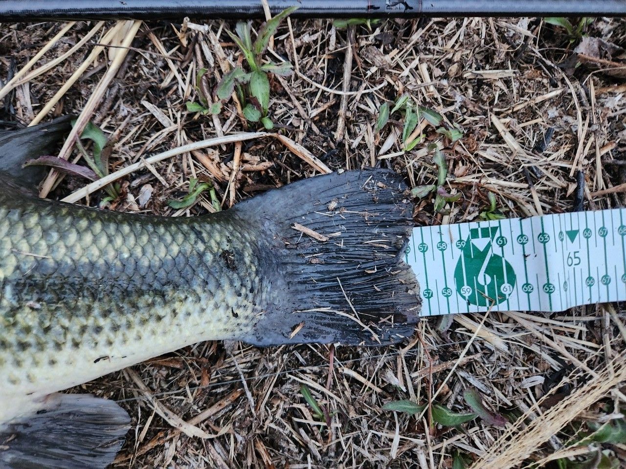 スローにボトムを引いたらショートバイトしてきました!今年の初バスは、56センチ!!