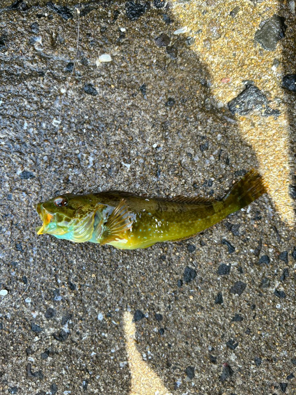 シイラを諦めてライトゲームへ、内側のロープや海藻の影にワームを落としてちょんちょんすると小さい魚達が遊んでくれました。メバル1、カサゴ3、アナハゼ1、ベラ1の計6匹釣れました。