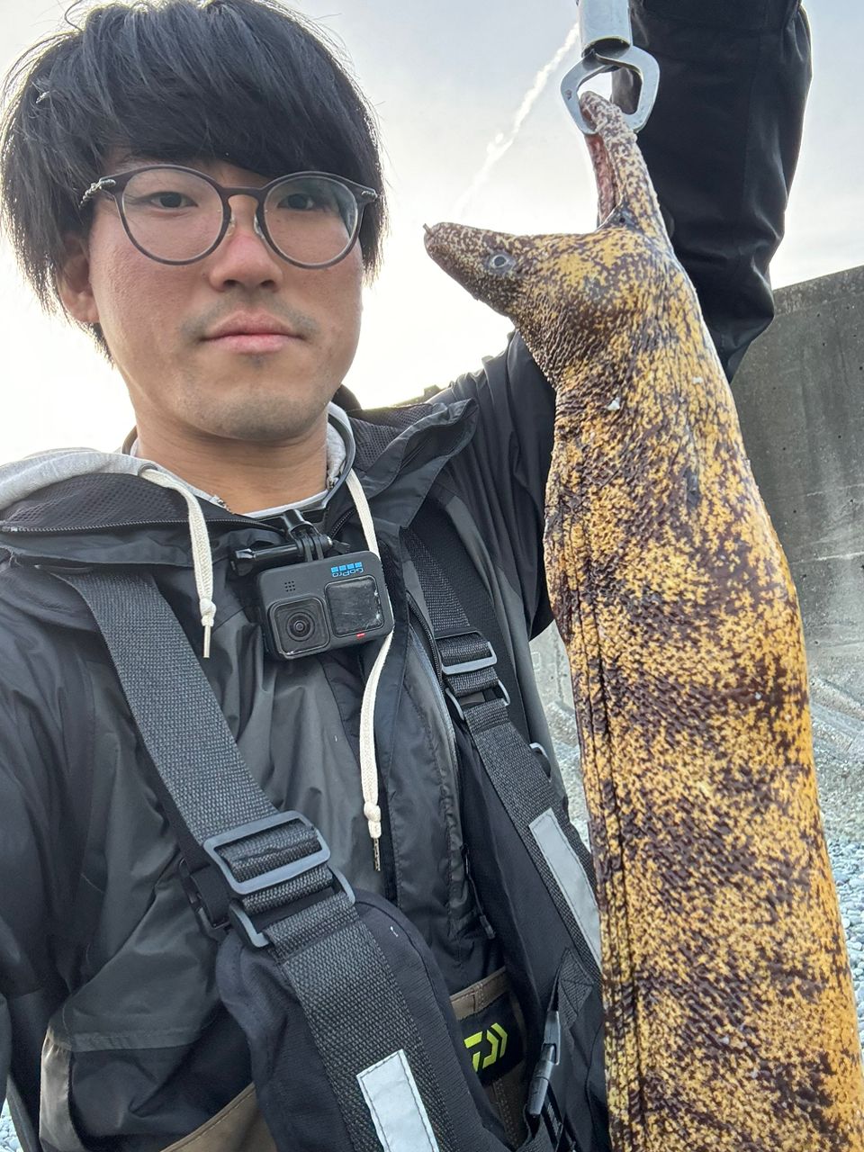 サーフでサバのぶっ込みしてたらウツボ初めて釣れました!嬉しい!