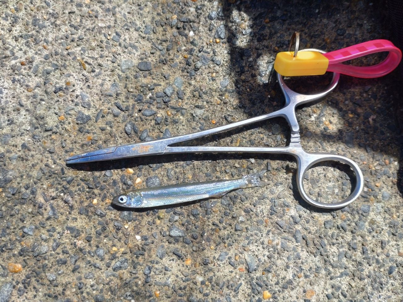 やっと釣れました♪個人的新種のアユ(稚鮎)。